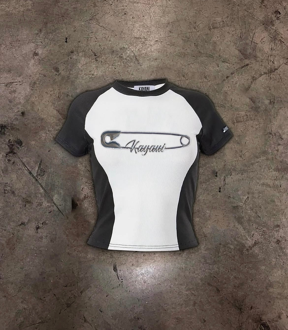 The KWAY NEEDLE BABY TEE is a stylish and comfortable raglan tee that hugs your body and is cropped above the waist. The print across the chest adds a unique touch to this versatile shirt. For the Guerrilla babies, stay $waggy stay sexy